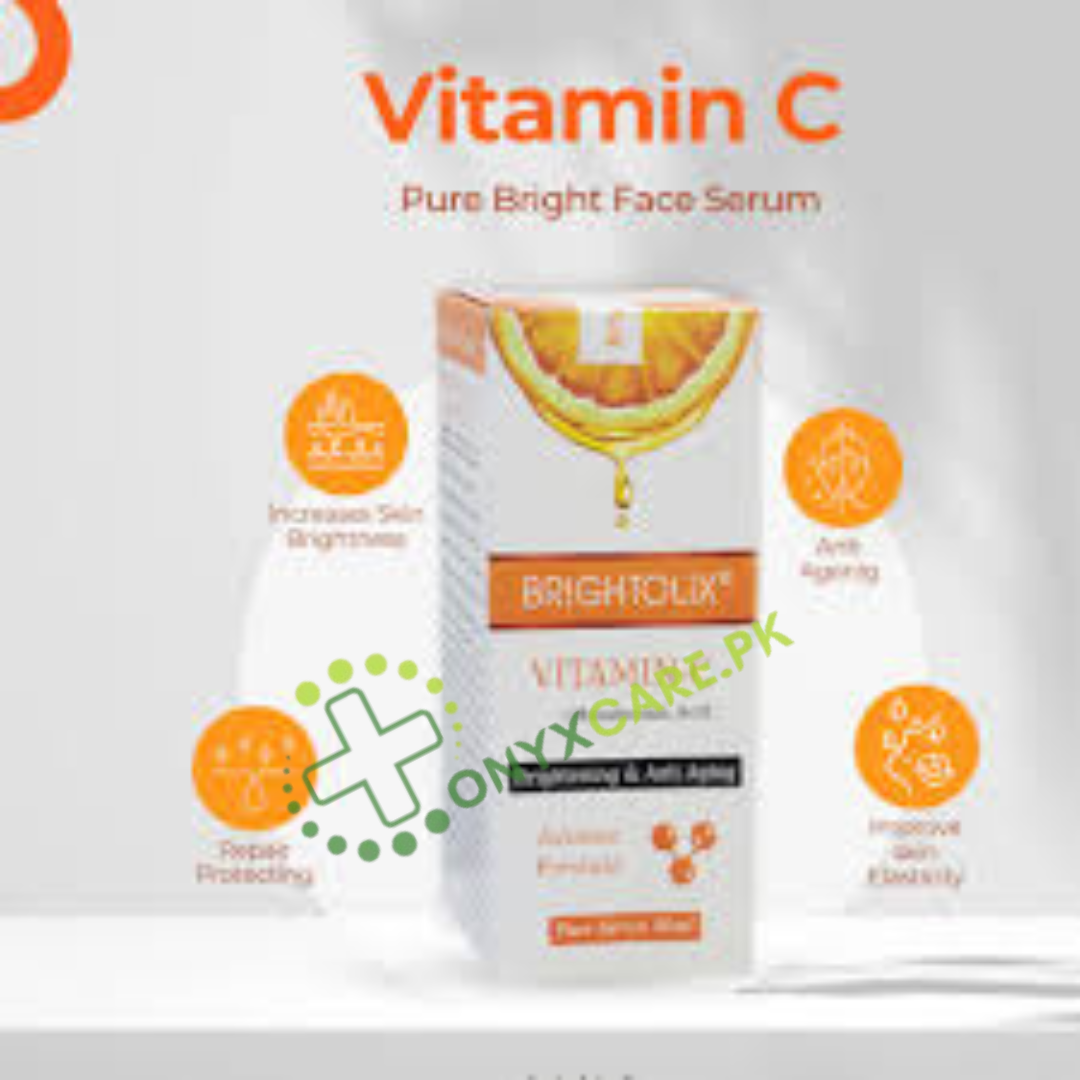 Unlock youthful radiance with Brightolix Vitamin C Serum (50 ML), expertly crafted for anti-aging, brightening, and firming benefits. Our new improved formula combines Vitamin C, Vitamin E, and Vitamin B3 to enhance skin elasticity, repair, and protect. This light yet highly effective vitamin C serum for face minimizes the formation of wrinkles and reduces existing ones. The high concentration of pure vegan hyaluronic acid plumps skin cells, while collagen ingredients restore and rejuvenate your skin. Whether you’re searching for the best skin whitening serum in Pakistan or an effective solution for fading dark spots and discoloration, Brightolix delivers a radiant and youthful glow.